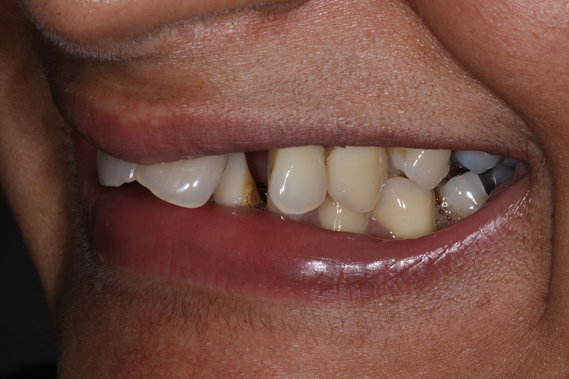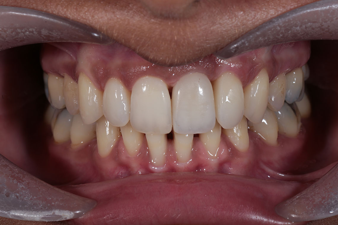 This lovely lady attended with very low confidence due to her teeth and smile. Gum disease and trauma had led to the teeth drifting. One of her front teeth was so loose that it needed to be replaced. We started by providing intensive treatment with our dental hygienist to treat the gum disease. Following this Invisalign® braces were used to align the teeth and the teeth were whitened. A dental implant was then placed to replace the loose front tooth and composite bonding was performed to the adjacent front tooth. The change in the patient’s confidence as a result of this work was breathtaking.