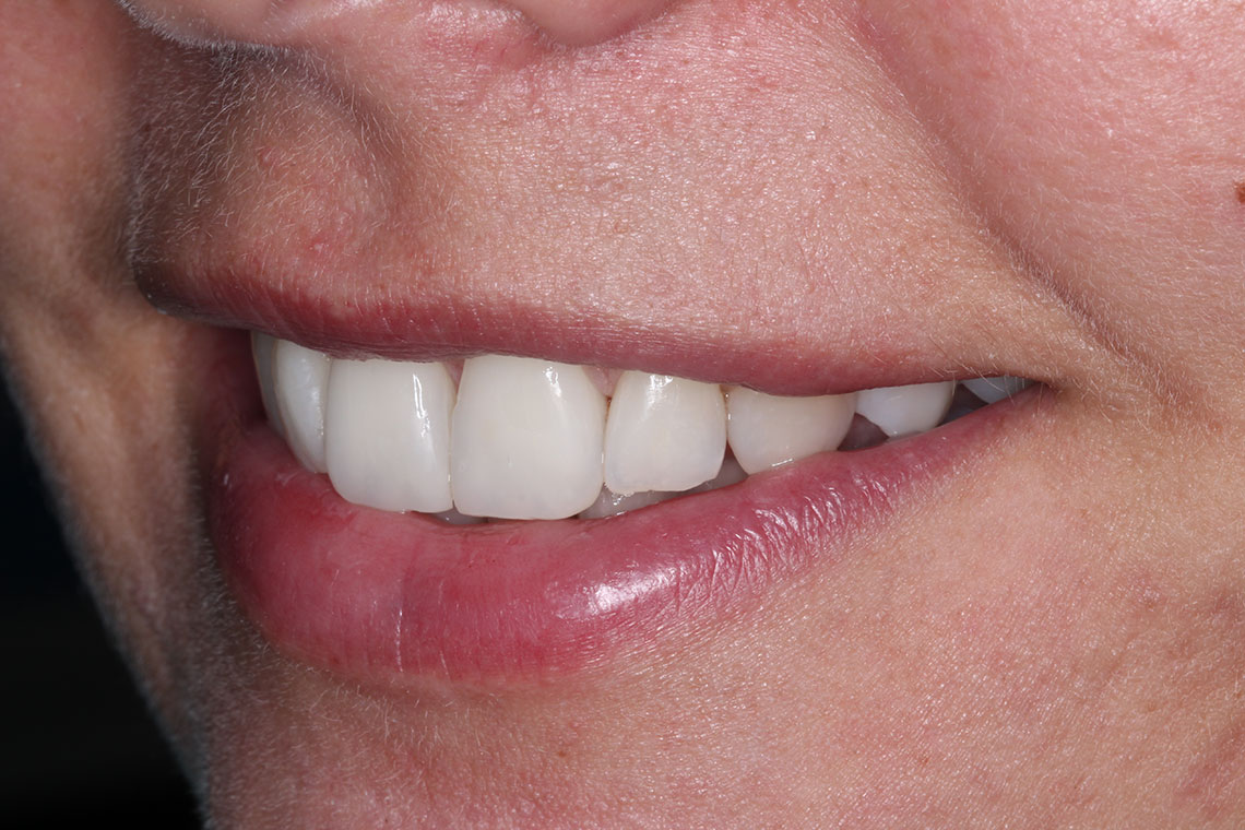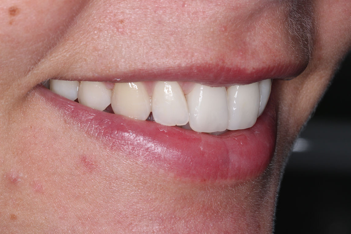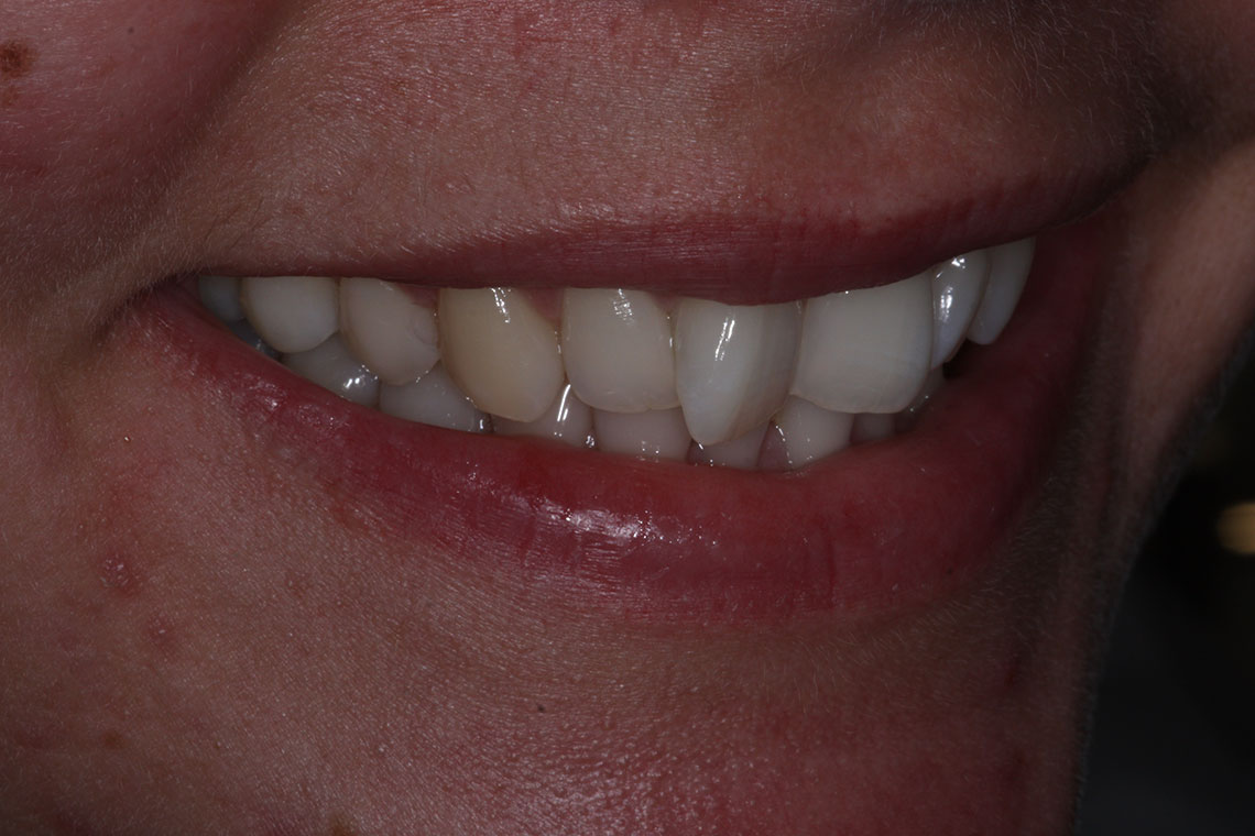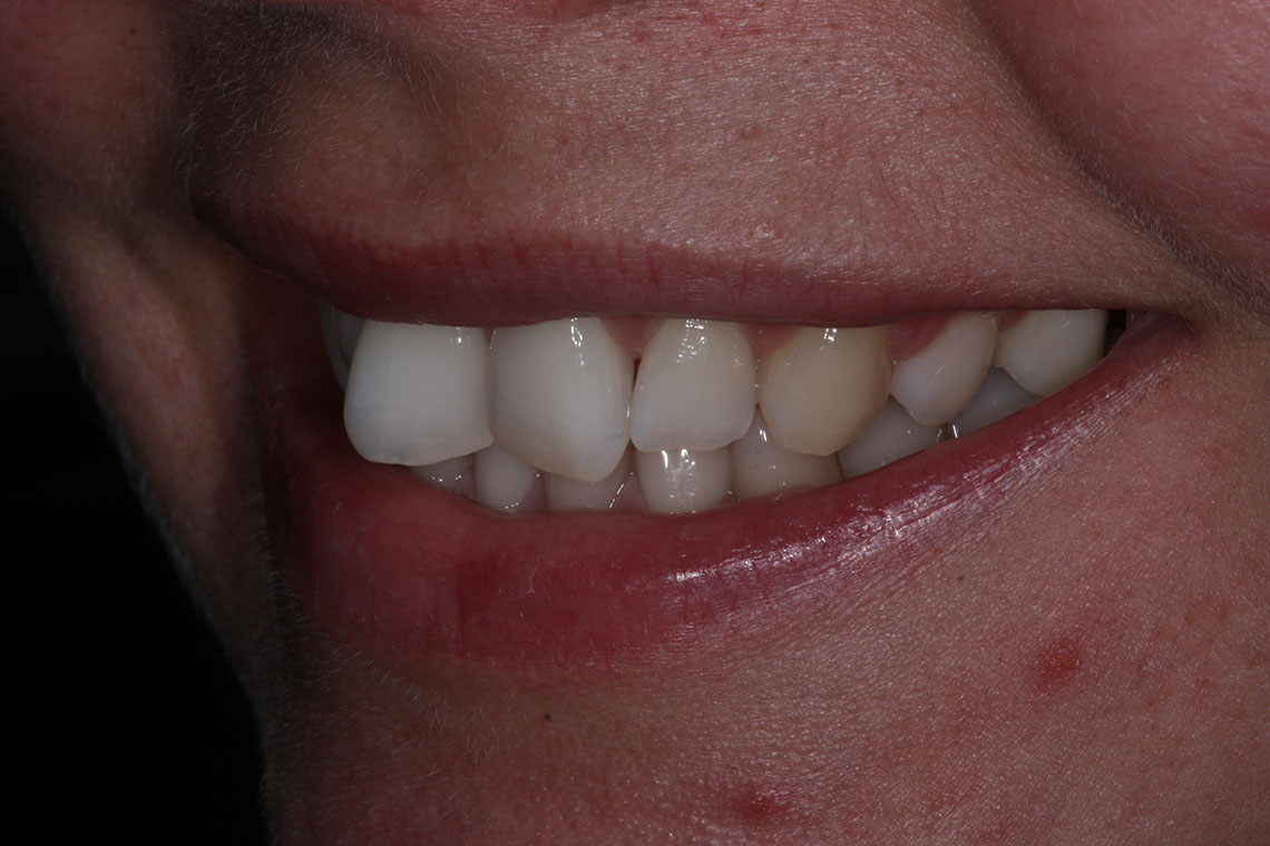 This young lady didn’t like her crowded and uneven teeth which had worn down. We straightened the teeth first discretely using Invisalign® clear braces and then whitened the teeth. Finally we placed composite bonding on the front two teeth.